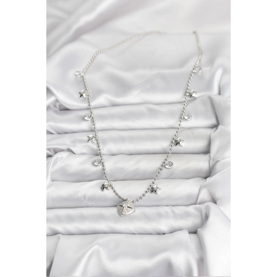 Mey İthalat® Pirinç Gümüş Renk Zirkon Taşlı Kutup Yıldızı Model Kadın Kolye