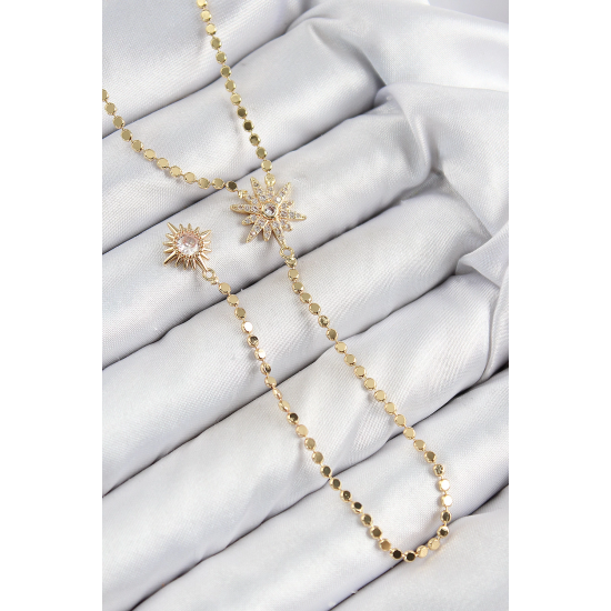 Mey İthalat® Pirinç Zirkon Taşlı Ezme Zincirli Kutup Yıldızı Model Gold Renk Y Kolye