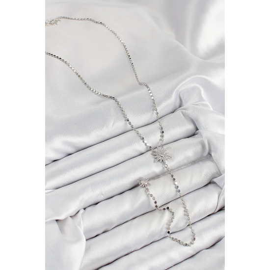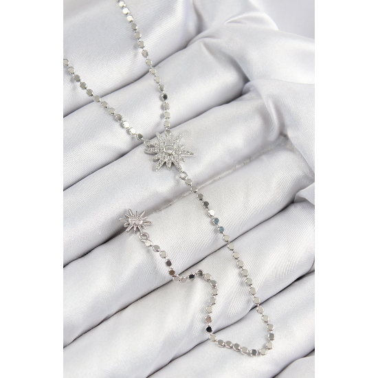 Mey İthalat® Pirinç Zirkon Taşlı Ezme Zincirli Kutup Yıldızı Model Gümüş Renk Y Kolye