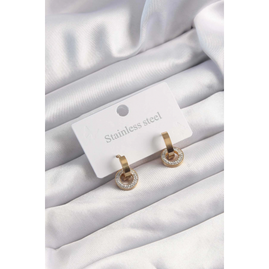 Mey İthalat® 316L Çelik Altın Renk Zirkon Taşlı Halka Model Küpe