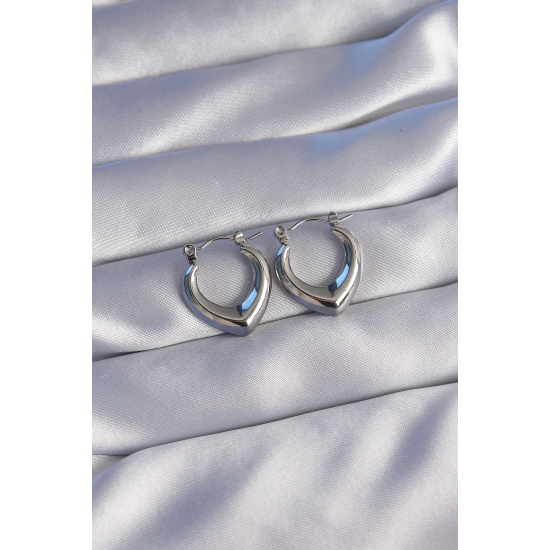 Mey İthalat® 316L Çelik Gümüş Renk İçi Oval Tasarımlı Küpe