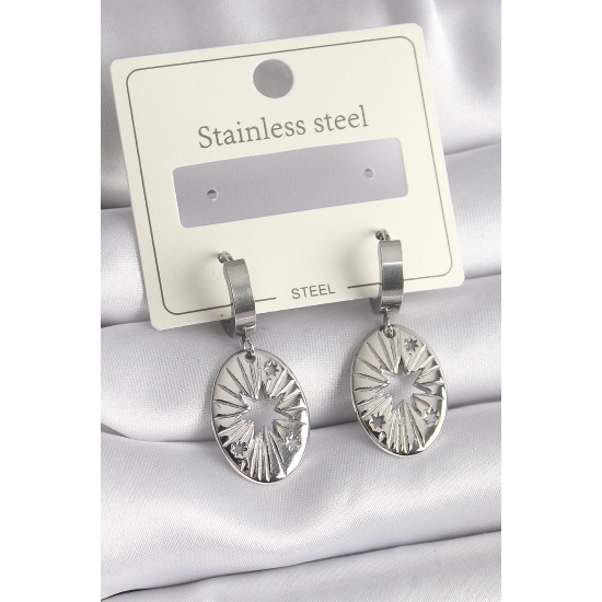 Mey İthalat® 316L Çelik Gümüş Renk Kutup Yıldızı İşleme Kadın Küpe