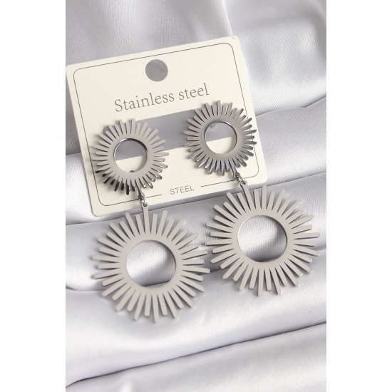Mey İthalat® 316L Çelik Gümüş Renk Sallantı Güneş Model Kadın Küpe