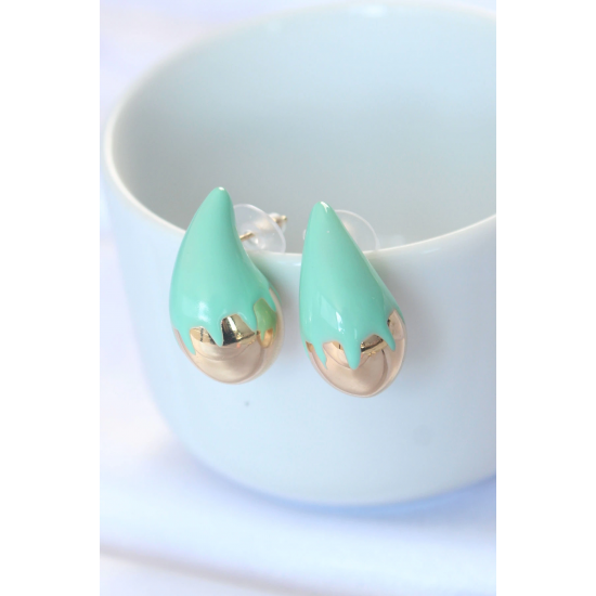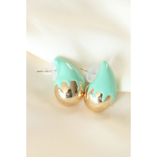 Mey İthalat® Minimal Turkuaz Mineli Çift Renk Damla Küpe