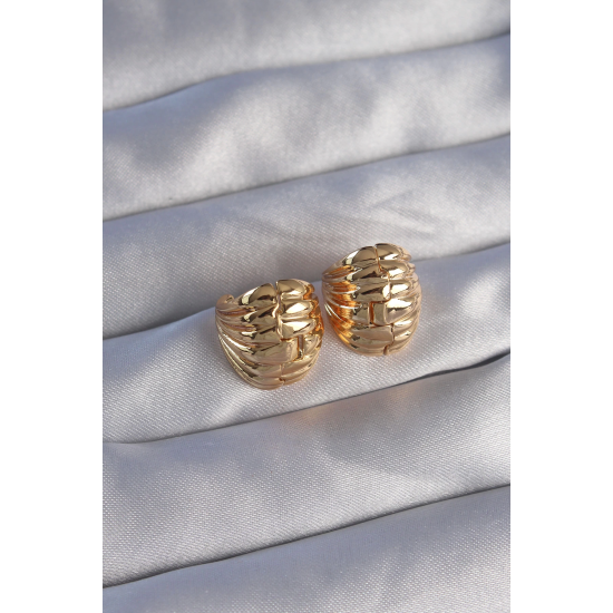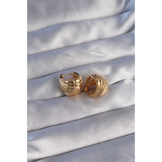 Mey İthalat® Pirinç Gold Renk Tırtıklı Minimal Bombeli Tasarım Küpe