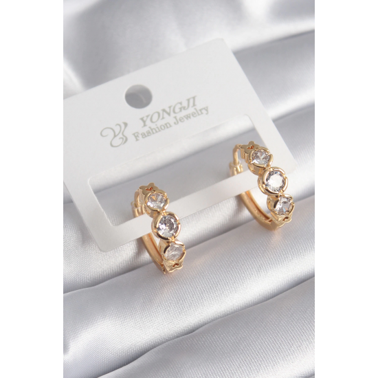 Mey İthalat® Pirinç Gold Renk Zirkon Taşı Kalp Detay Kadın Küpe