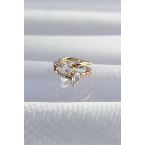 Mey İthalat® Pirinç Gold Renk Zirkon Taşlı Damla Earcuff Küpe