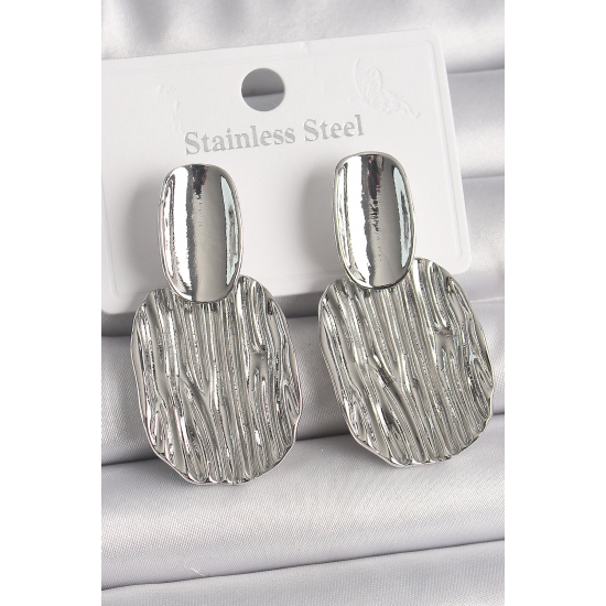 Mey İthalat® Pirinç Gümüş Renk İşlemeli Kare Plaka Model Kadın Küpe