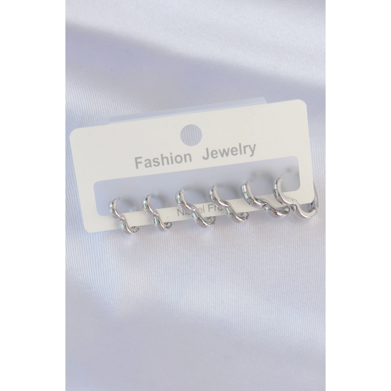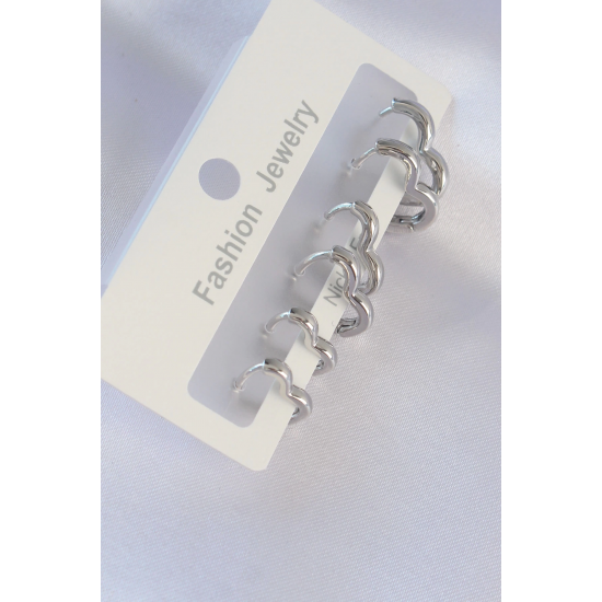 Mey İthalat® Pirinç Gümüş Renk Kalp Model Küpe Seti