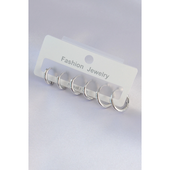 Mey İthalat® Pirinç Gümüş Renk Oval Küpe Seti