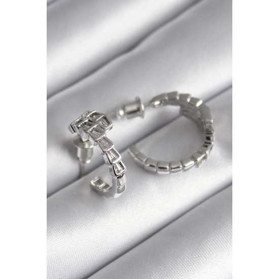 Mey İthalat® Pirinç Gümüş Renk Zirkon Taşlı Yılan Model Kadın Küpe