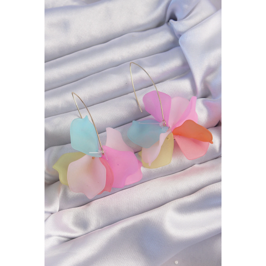 Mey İthalat® Pirinç Karışık Renkli Flora Küpe