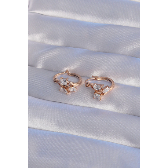 Mey İthalat® XUPİNG Rose Renk Zirkon Taşlı Halka Küpe