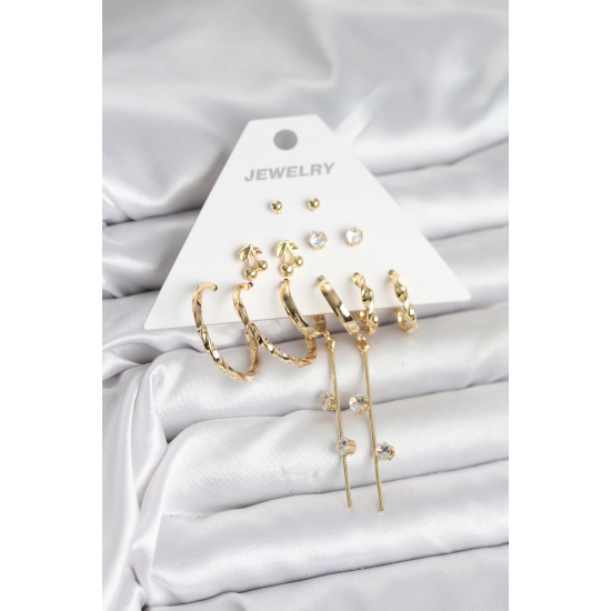 Mey İthalat® Gold Renk 6 Çift Pirinç Kadın Küpe Seti