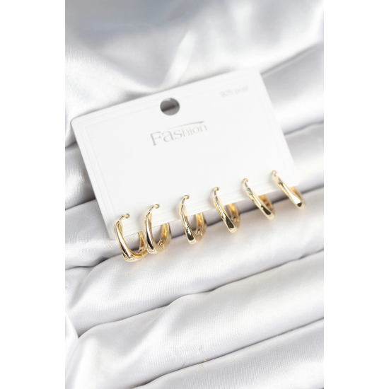 Mey İthalat® Gold Renk Pirinç Kare Halka Model 925 Ayar Gümüş Çivili Kadın Küpe Seti