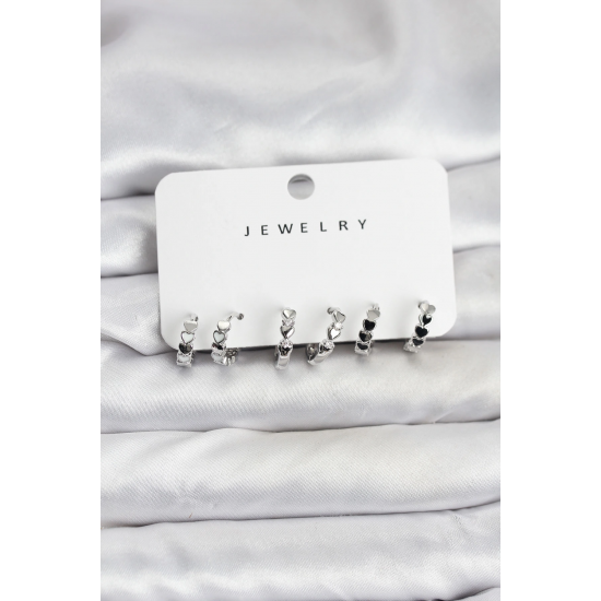 Mey İthalat® Gümüş Renk Pirinç Minimal Kalp Detaylı Kadın Küpe Seti