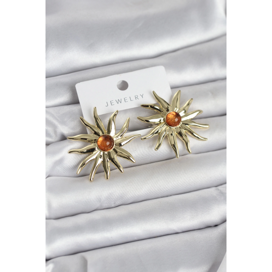 Mey İthalat® Güneş Model Gold Renk Pirinç Kadın Küpe