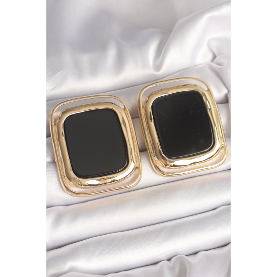 Mey İthalat® Pirinç Gold Renk Siyah Mineli Kare Model Kadın Küpe