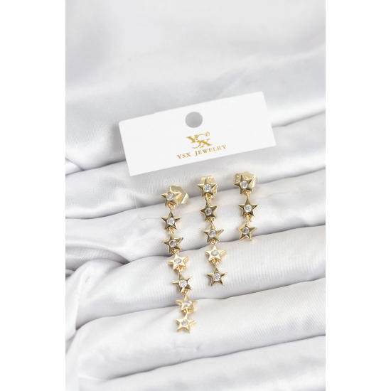 Mey İthalat® Pirinç Gold Renk Yıldız Model YSX Trio Küpe Seti