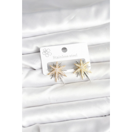 Mey İthalat® Pirinç Gümüş Renk Kutup Yıldızı Kadın Küpe
