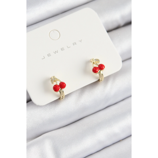 Mey İthalat® Pirinç Kiraz Model Gold Renk Çocuk Küpe
