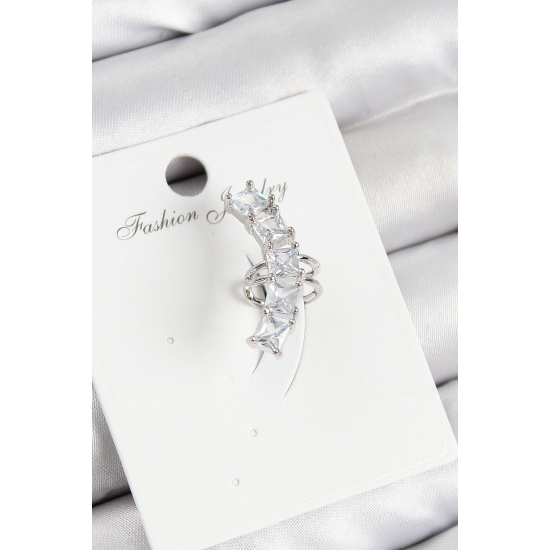 Mey İthalat® Pirinç Zirkon Taşlı Model Gümüş Renk Sağ Kıkırdak Küpe