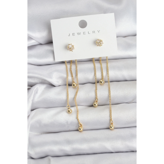 Mey İthalat® Topçuk Model Gold Renk Pirinç Sallantılı Kadın Küpe Seti
