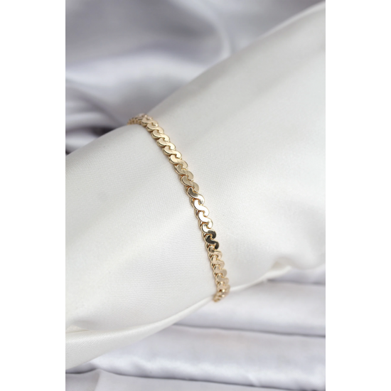 Mey İthalat® 14K Gold Renk Kaplama Ezme Yılan Zincir Model CM Kadın Bileklik