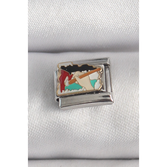 Mey İthalat® 316L Çelik Gümüş Renk Renkli Palet Fırça İşlemeli Model Nomination Charm