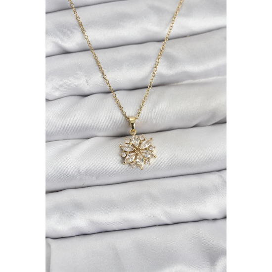 Mey İthalat® 316L Çelik Zincir Gold Renk Lotus Model Zirkon Taşlı Kadın Kolye