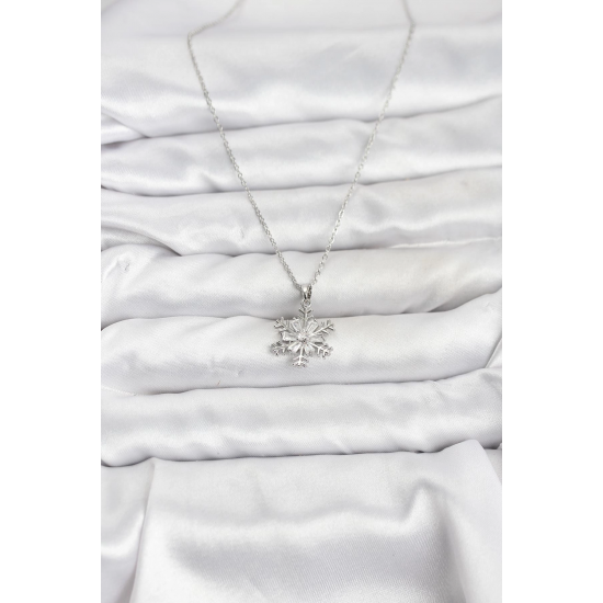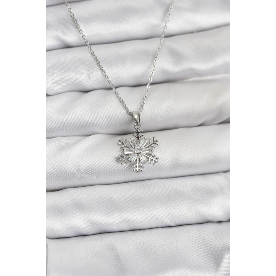 Mey İthalat® 316L Çelik Zincir Gümüş Renk Kar Tanesi Model Zirkon Taşlı Kadın Kolye