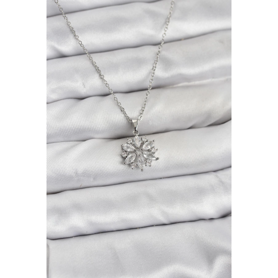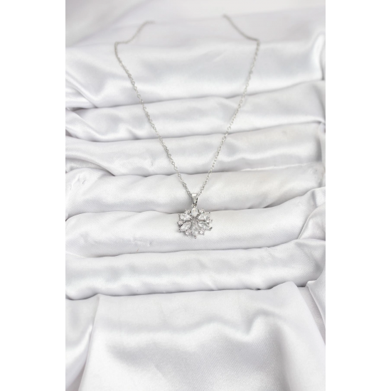 Mey İthalat® 316L Çelik Zincir Gümüş Renk Lotus Model Zirkon Taşlı Kadın Kolye