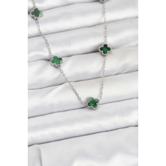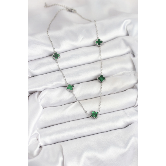 Mey İthalat® 316L Çelik Zincir Gümüş Renk Yeşil Baby Boy Yonca Kadın Kolye