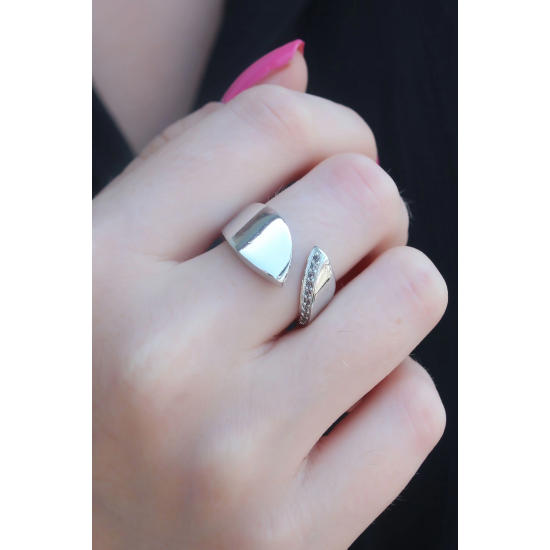 Mey İthalat® Gümüş Renk Zirkon Taşlı Kadın Yüzük