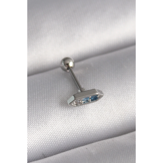 Mey İthalat® 316L Çelik Gümüş Renk Mavi Zirkon Taşlı Tragus Piercing