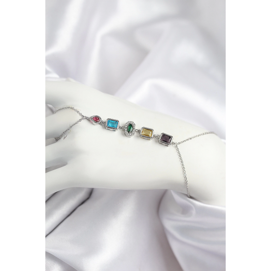 Mey İthalat® Pirinç Renkli Zirkon Taşlı Model Gümüş Renk Şahmeran