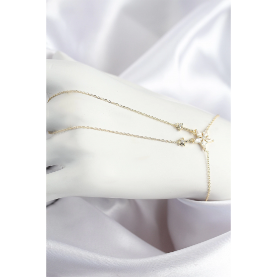 Mey İthalat® Pirinç Zirkon Taşlı Yıldız Model Gold Renk Şahmeran