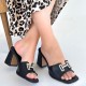 Caren Siyah Cilt Topuklu Terlik