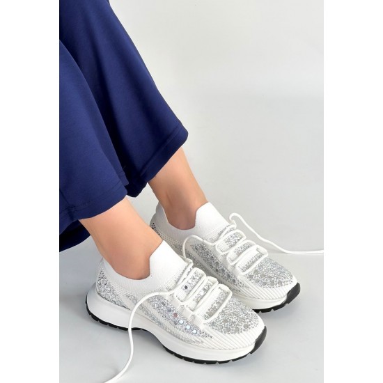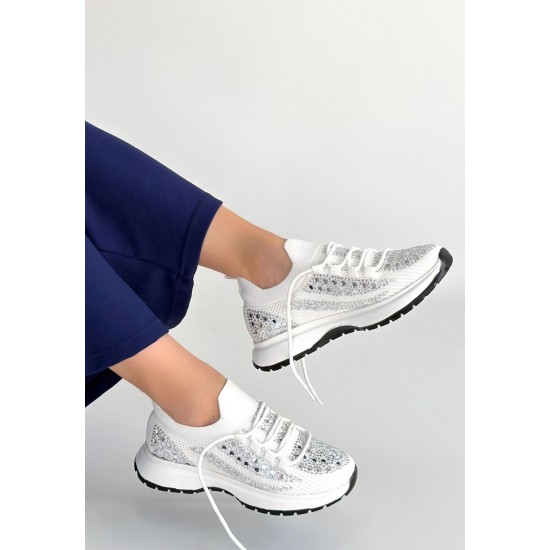 Ceas Beyaz Triko Bağcıklı Spor Ayakkabı