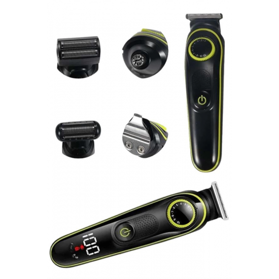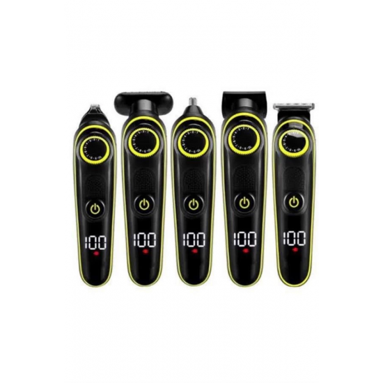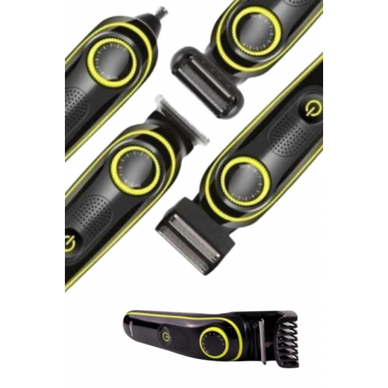 Bu 5'i 1 arada çok fonksiyonlu bakım seti, kişisel bakım rutininizi daha pratik ve etkili hale getiriyor. Saç kesimi, sakal tıraşı, burun ve kulak kılı temizliği, detaylı şekillendirme ve vücut tıraşı gibi birden fazla işlevi tek cihazda sunarak, tam kapsamlı bakım imkanı sağlıyor. Güçlü motoru ve paslanmaz çelik bıçakları ile pürüzsüz bir tıraş deneyimi sunarken, uzun ömürlü ve keskin yapısı sayesinde her kullanımda yüksek performans elde edebilirsiniz. Kablosuz ve şarjlı kullanımı sayesinde hareket özgürlüğü tanır; tam dolu batarya ile uzun süreli kullanım imkanı sunar. Farklı kesim uzunlukları için ayarlanabilir tarak başlıkları mevcuttur; bu sayede kişisel stilinize uygun şekillendirmeyi zahmetsizce gerçekleştirebilirsiniz. Ergonomik tutuşa sahip şık ve modern tasarımı, hem kullanım kolaylığı sağlar hem de banyo alanınıza estetik bir katkı sunar. Üzerindeki LED gösterge, pil seviyesini anlık olarak takip etmenize olanak tanırken, düşük sesli çalışması ile her ortamda konforlu bir kullanım deneyimi yaşatır. Suya dayanıklı başlıkları ve çıkarılabilir bıçakları sayesinde temizlik işlemleri oldukça kolaydır; hijyenik kullanım için yalnızca düzenli olarak yıkamanız yeterlidir.