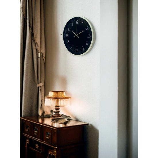 Krem renkli çerçevesi ve koyu zemin üzerindeki ince, zarif rakam tasarımıyla öne çıkan bu 36 cm duvar saati; bulunduğu ortama sakin, şık ve dengeli bir görünüm kazandırır. Minimal kadran yapısı sayesinde gözü yormaz, zamanı rahatça okumayı sağlar. Modern ve sade dekorasyon tarzlarını tamamlayan zamansız bir tasarıma sahiptir.