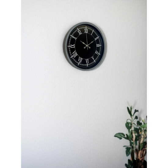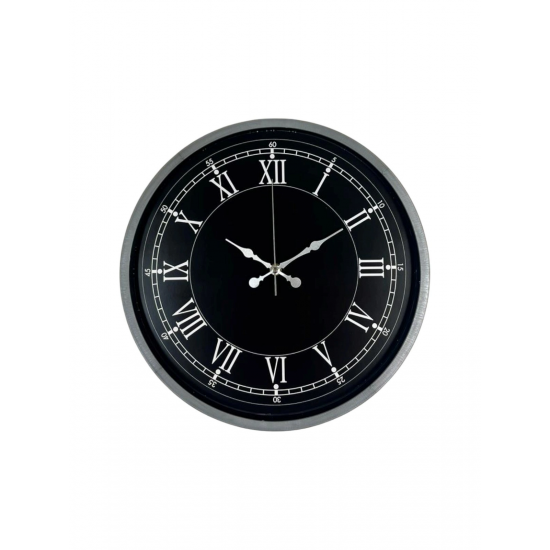 Klasik Roma rakamları, siyah kadranı ve gri çerçevesiyle tasarlanan bu 36 cm duvar saati; zamansız bir şıklık sunar. Net ve dengeli kadran yapısı sayesinde kolay okunur, dekorasyona güçlü bir karakter katar.