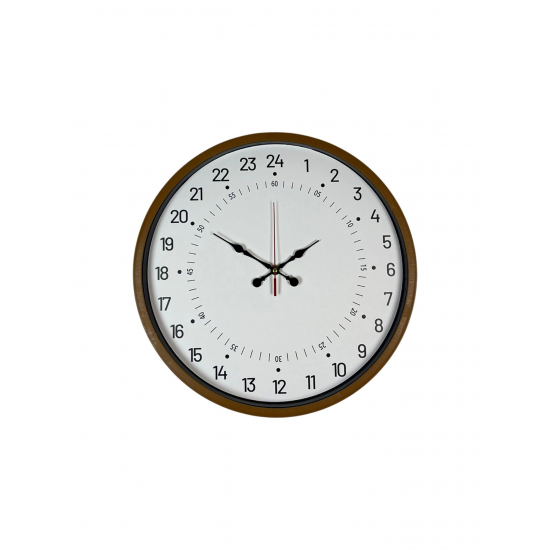 Kahverengi çerçevesi ve sade beyaz kadranı ile tasarlanan bu 36 cm duvar saati, hem modern hem de klasik mekânlara rahatlıkla uyum sağlar. Net ve okunaklı rakam yapısı, 24 saatlik sistemi ilk kez kullananlar için bile kolay bir algılama sunar. Özellikle vardiyalı çalışanlar, ofisler, eğitim alanları ve farklı tasarımlardan hoşlanan kullanıcılar için ideal bir modeldir.