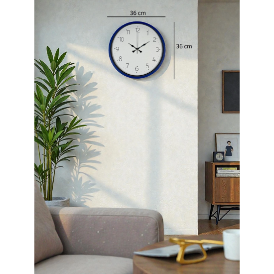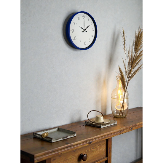 Lacivert çerçevesi ve beyaz zeminli kadranıyla tasarlanan bu 36 cm duvar saati, sade şıklığı modern çizgilerle buluşturur. Net ve büyük rakamları sayesinde zamanı uzaktan dahi kolayca okumaya imkân tanır. Günlük kullanım için pratik, dekoratif açıdan ise her ortama uyum sağlayan zamansız bir tasarıma sahiptir.