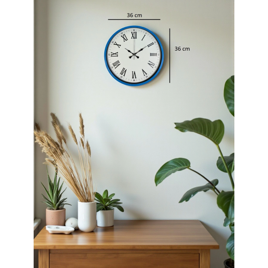 Mey İthalat® 36 Cm Mavi Roma Rakamlı Duvar Saati