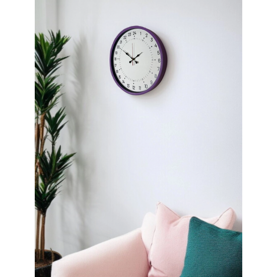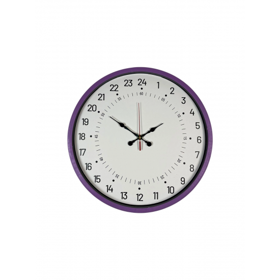 Klasik duvar saatlerinden ayrılan 24 saatlik tek kadranlı özel tasarımı ile öne çıkan bu 36 cm mor duvar saati, zamanı daha bilinçli ve net şekilde takip etmek isteyenler için tasarlanmıştır. Günün tamamını tek bakışta sunan 24 saat göstergesi sayesinde, alışılmış 12 saatlik saatlerden farklı ve işlevsel bir kullanım deneyimi sağlar.
