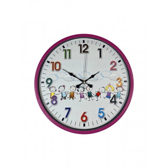 Mey İthalat® 36 Cm Pembe Çocuk Odası Duvar Saati