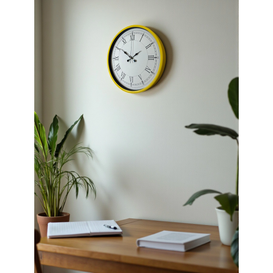 Mey İthalat® 36 Cm Sarı Dekoratif Duvar Saati