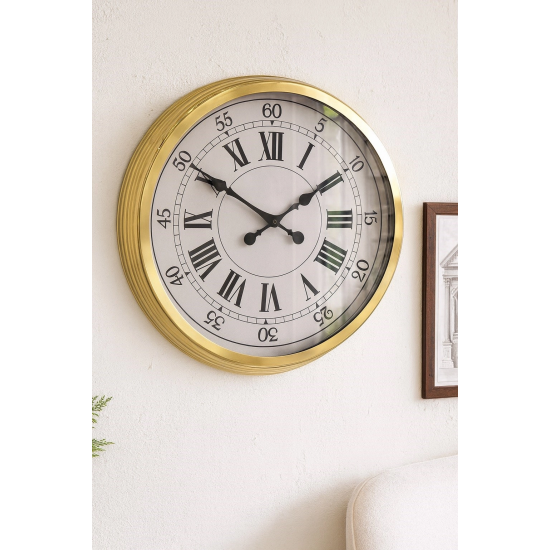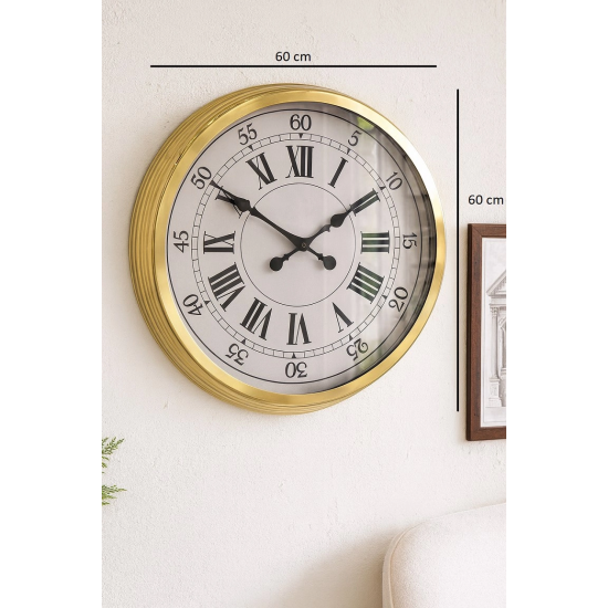 Mey İthalat® 60 cm Gold Metal Dekoratif Roma Rakamlı Duvar Saati