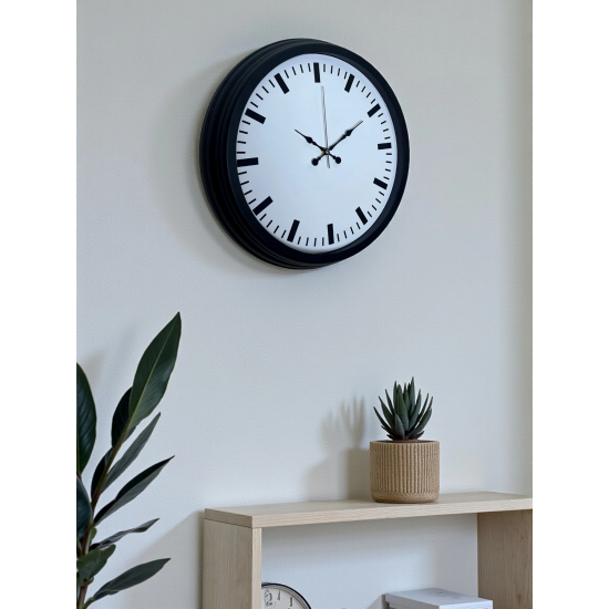 Sade çizgileri ve modern tasarımıyla öne çıkan bu çubuk indeksli beyaz duvar saati, ferah ve düzenli yaşam alanları için ideal bir seçimdir. Rakam kullanılmadan tasarlanan kadran yapısı, saate modern ve sofistike bir görünüm kazandırırken mekâna sakin bir estetik sunar. Beyaz kadran ile siyah metal kasa arasındaki kontrast, hem şıklığı hem de kolay algılanabilirliği artırır.